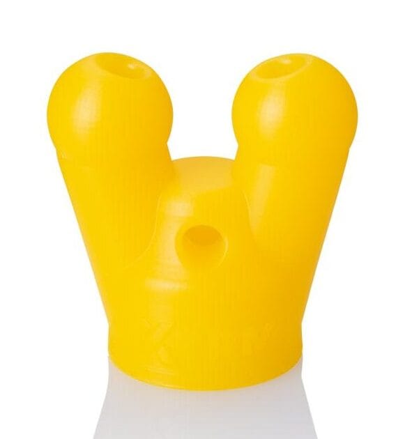 Die Poppers Booster Cap XTRM SNFFR Double Small Gelb von XTRM passt auf alle runden 10ml- und 30ml-Flaschen des Herstellers Lockerroom aus Kanada. Mit der gelben Farbe des Sniffers zeigst du deine Vorlieben.