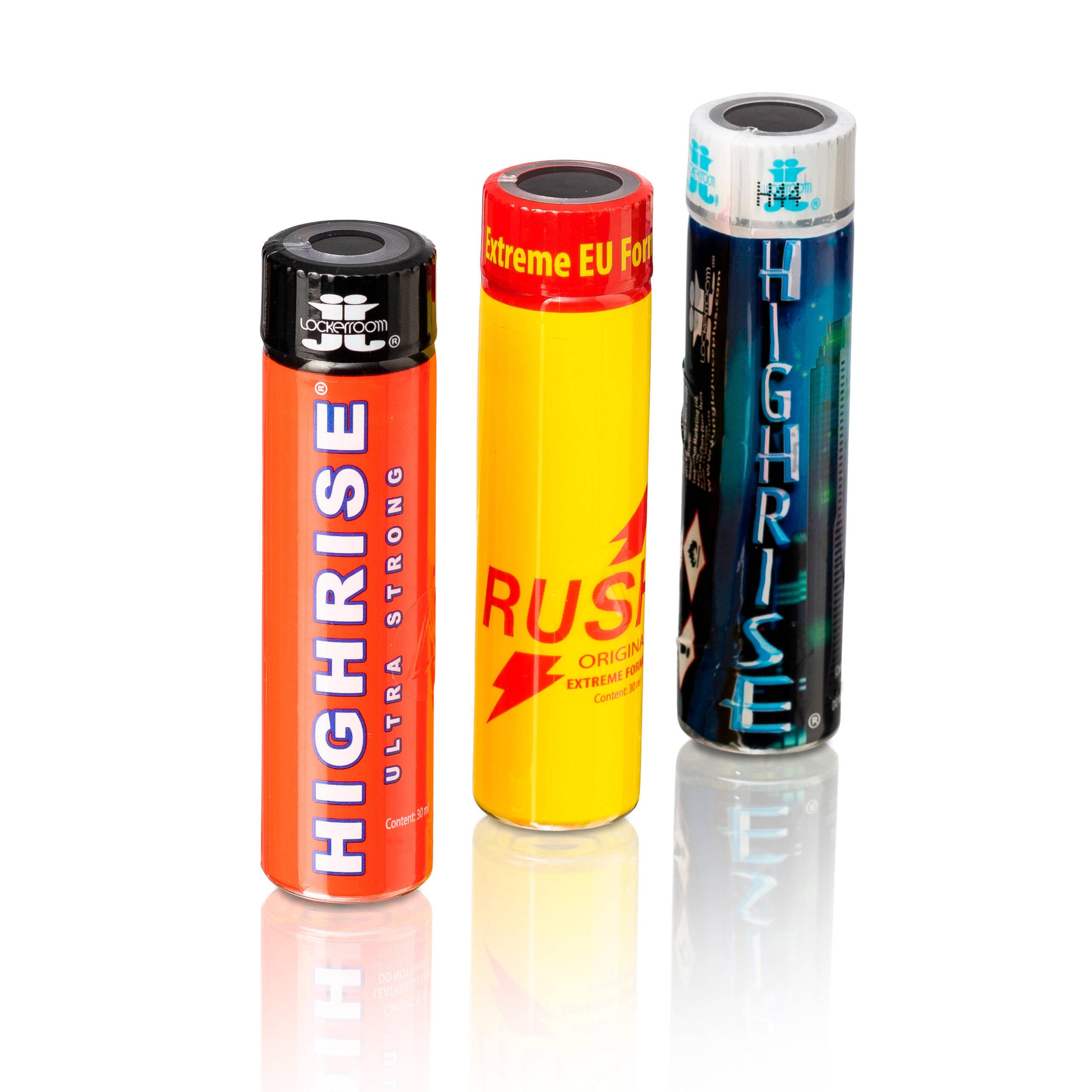 Das Tall Bottle Combo 3 Flaschen 30ml enthält drei schlanke, hohe Poppers-Flaschen. Mit zweimal Highrise und einmal Rush bekommst du zwei klassische Top-Marken in einem Combo. Alle 3 Poppers stammen vom kanadischen Hersteller Lockerroom. Extra stark, basierend auf der Canadian Pentyl Formula. Wenn du Tall Bottles liebst, dann ist das dein Combo.