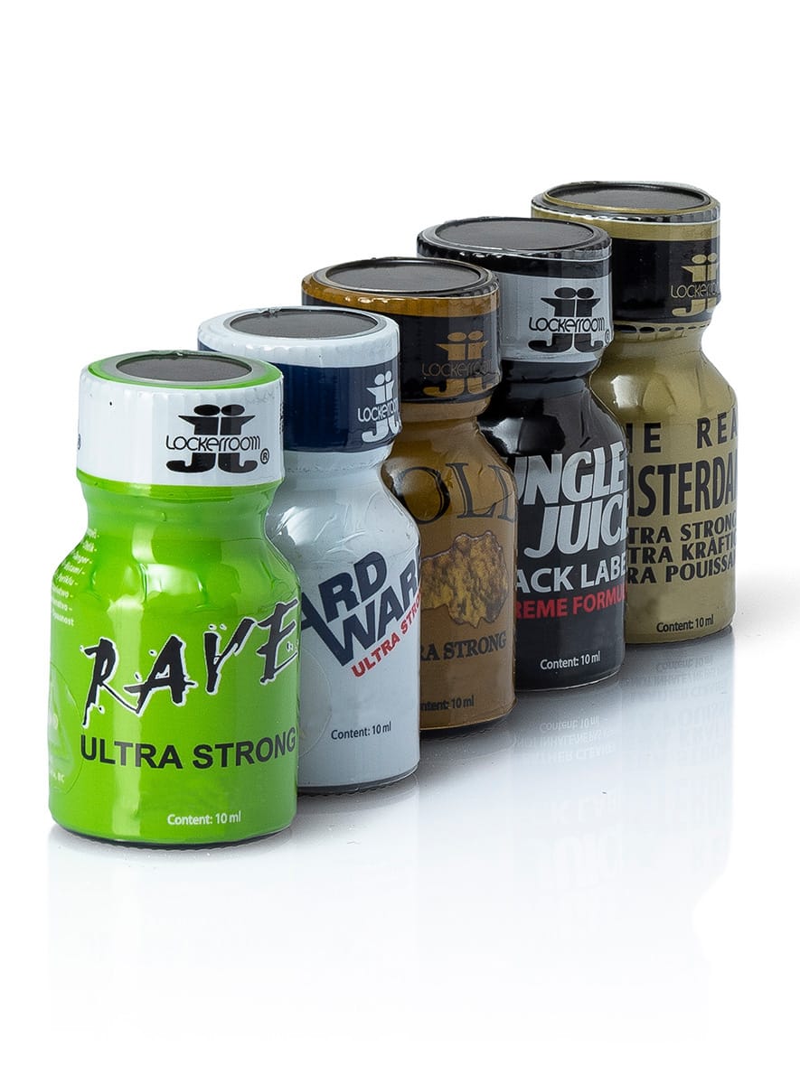 Das Ultra Strong 10ml Poppers Combo 5x: Alle 5 Ultra-Strong Poppers in einem Paket: Rave Ultra Strong 10 ml, Hardware Ultra Strong 10 ml, Gold Extra Strong 10 ml, Jungle Juice Black Extreme 10 ml, Amsterdam Real 10 ml. Hol dir die stärksten Poppers von Lockerroom aus Kanada im günstigen Sparpaket.